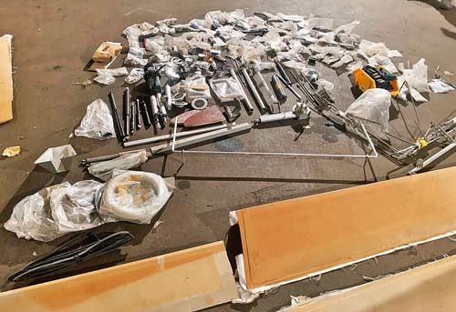 seats, instrument panel, pedals, flight controls, rods and