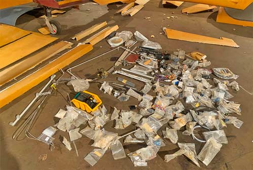 Kit comes with all hydraulic tubing and hoses, AN fittings, actuators, motors for retractable gear and wheel doors, plus all hardware, wires, hinges and rods for flight controls.